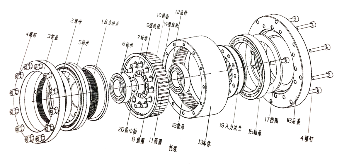 行星圓齒式減速機(jī)分解圖: