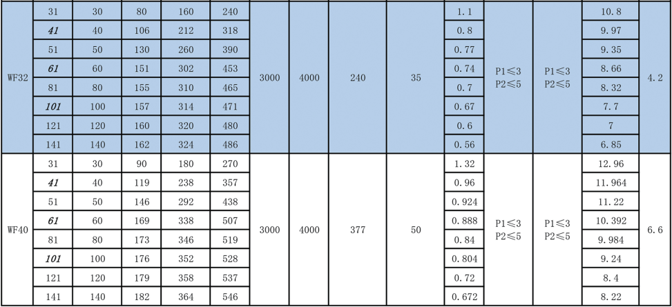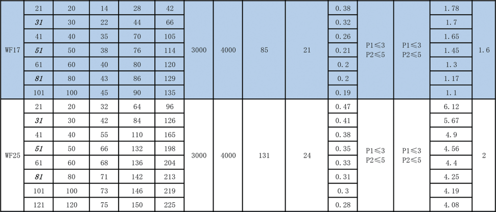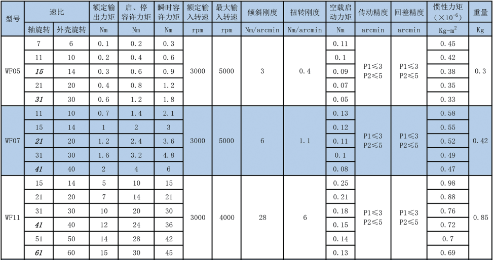 行星圓齒式減速機(jī)性能表: