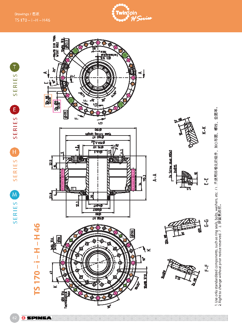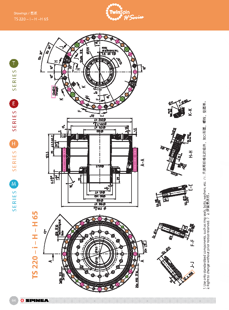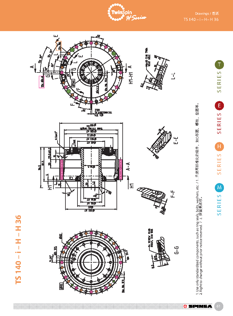 H 系列是帶有中空孔的Twinspin高精度減速機。電線,壓縮空氣管道,驅動軸可從減速機中間穿過。 該系列為完全密封,內部注有終生免維護油脂。 減速機包含精密減速機構和高強度交叉滾子軸承,故又名“軸承式減速機”。這種設計可以把負載直接安裝在減速機輸出法蘭上,省去輸出端的額外軸承。