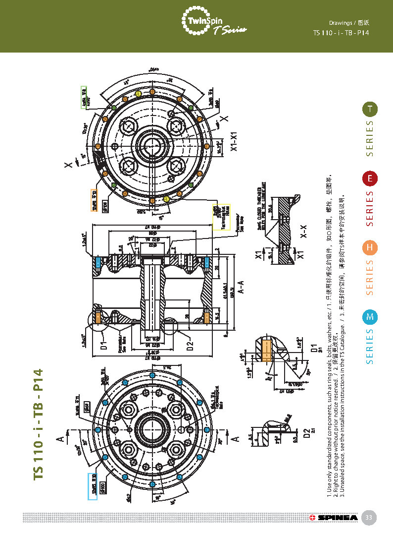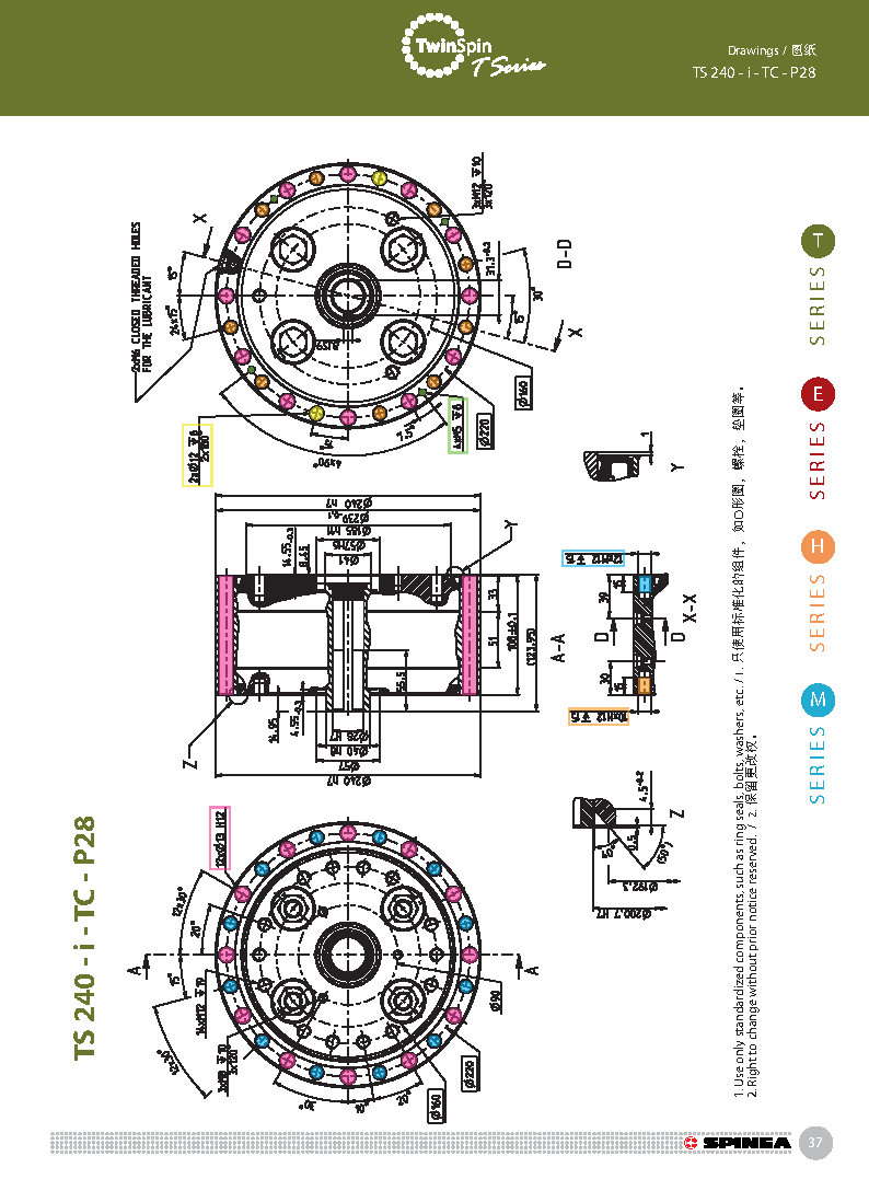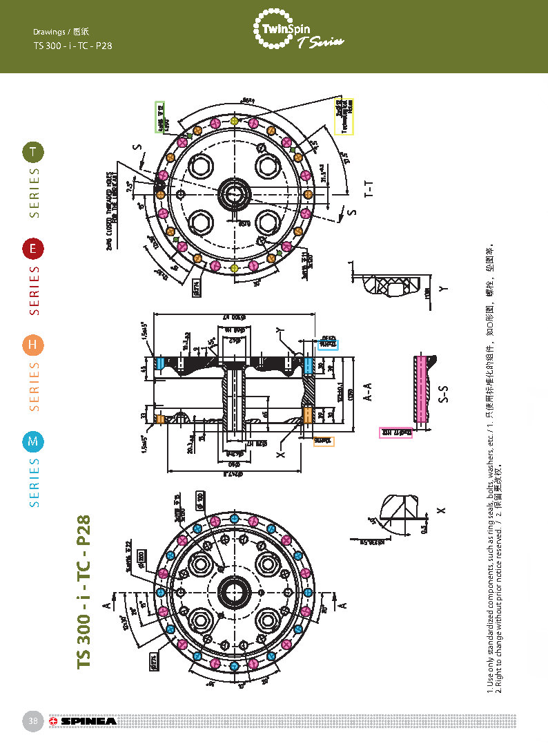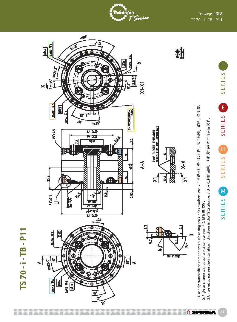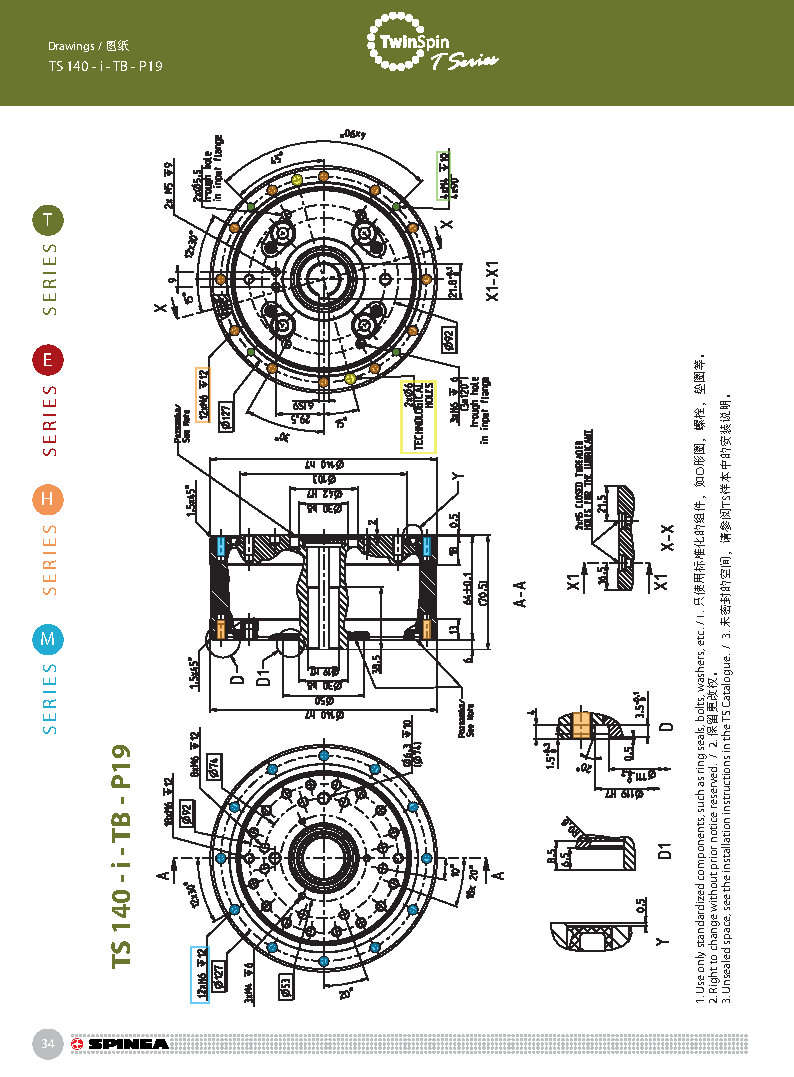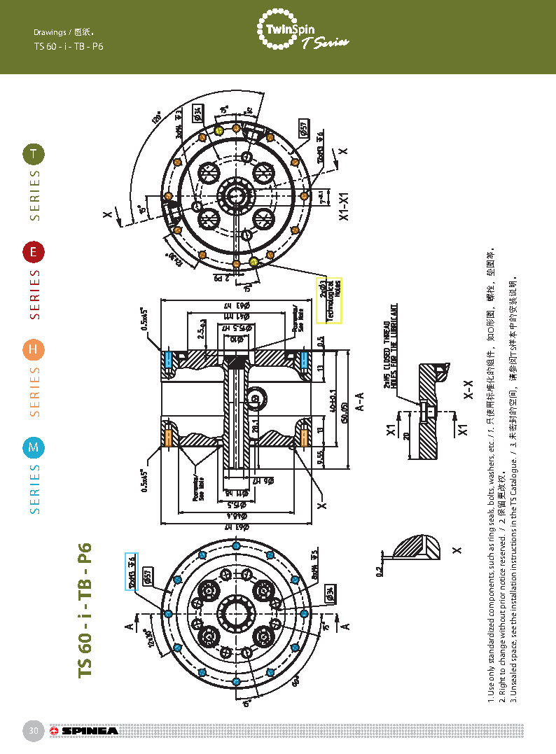 T 系列是帶有圓柱形殼體的Twinspin高精度減速機應用范圍最廣的形式。 該系列內部包含精密減速機構和高強度交叉滾子軸承,又名“軸承式減速機”。這種設計可以把負載直接安裝在減速機輸出法蘭上,省去輸出端的額外軸承。 T系列采用模塊化設計,允許用戶通過電機法蘭的方式連接各種電機。 標準的T系列減速機為半密封狀態;需要用輸入法蘭和墊圈密封。SPINEA可根據客戶電機結構提供全密封帶輸入法蘭的減速機。