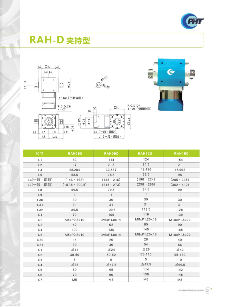 RAH-D系列是夾持型設(shè)計。 鋁合金材質(zhì)可提高散熱能力,減緩溫升現(xiàn)象造成影響。 多樣化的出力軸可因應(yīng)各種場合,客制化的入力端可搭配各式馬達。 提供各式特色之減速機,供使用者依需求選購。 特殊油封設(shè)計,正常使用下不需保養(yǎng)亦不用更換潤滑油,可延長使用壽命。 各式特色,體積小,省空間,噪音低,輸出扭矩高,安裝容易,可搭配馬達型號廣泛。 RAH搭配DM,一體成型的齒輪組,可有效的減低噪音。 RAH搭配DH,最佳的性價比,可廣泛應(yīng)用于各種場合。