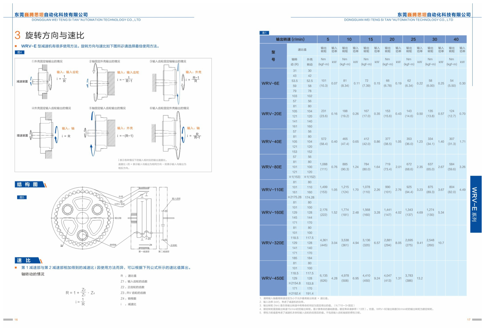 WRV-E系列機器人專用RV減速機。 安裝有徑向止推滾珠軸承,因此能夠支撐外部負荷,力矩剛性、允許力矩大,可以減少所需的構成零部件的個數,安裝方便。 WRV齒輪的公轉速度變慢,振動減少,能夠減少電機結構(輸入齒輪)、慣性。