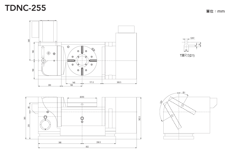 TDNC五軸搖籃式分度盤 CNC數(shù)控分度盤搖籃式五軸結(jié)構(gòu)特點(diǎn): 1、 采用進(jìn)口雙導(dǎo)程蝸桿、渦輪,渦輪采用鋁青銅合金,傳動(dòng)定位精度高; 2、 渦輪大小接近盤面大小,不偷工減料,剛性比同類產(chǎn)品要強(qiáng)30%-50%; 3、 提供高準(zhǔn)確和高效能的生產(chǎn); 4、 搖擺結(jié)構(gòu)配置傾斜軸中心線與旋轉(zhuǎn)盤面高度一致,可承受更多的加工扭力和減少機(jī)器垂直行程的干涉。